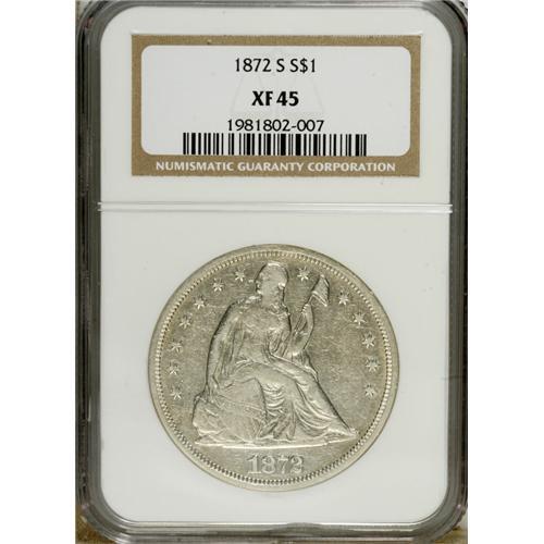 1872-S S$1 XF45 NGC. One of just 9,000 examples struck