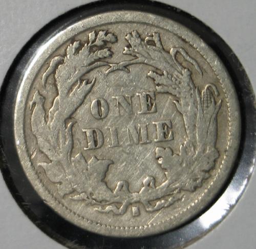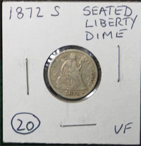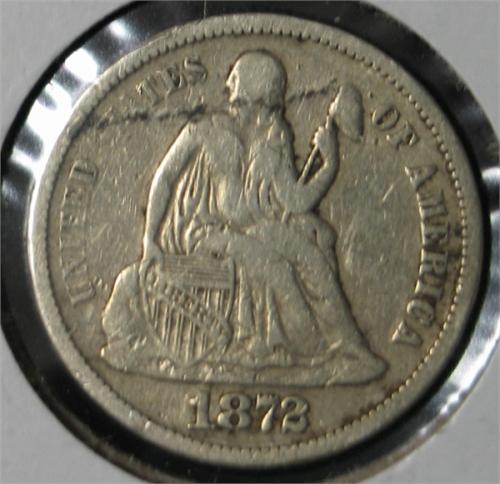 1872-S SEATED LIBERTY DIME. VF.