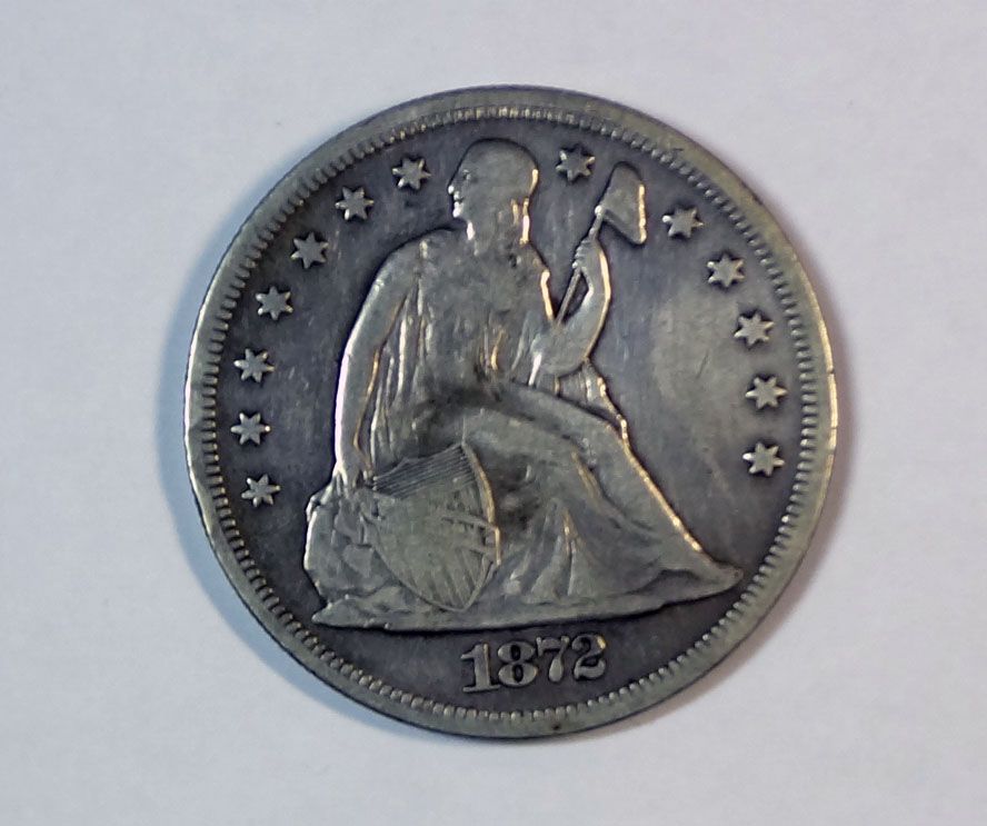 1872 SEATED DOLLAR VF-XF