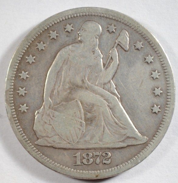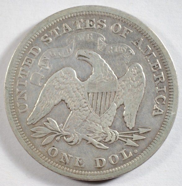 A NICE EXAMPLE OF A SEATED LIBERTY DOLLAR WITH IT'S NATURAL LOOK. EST. $345.00 TO $355.00