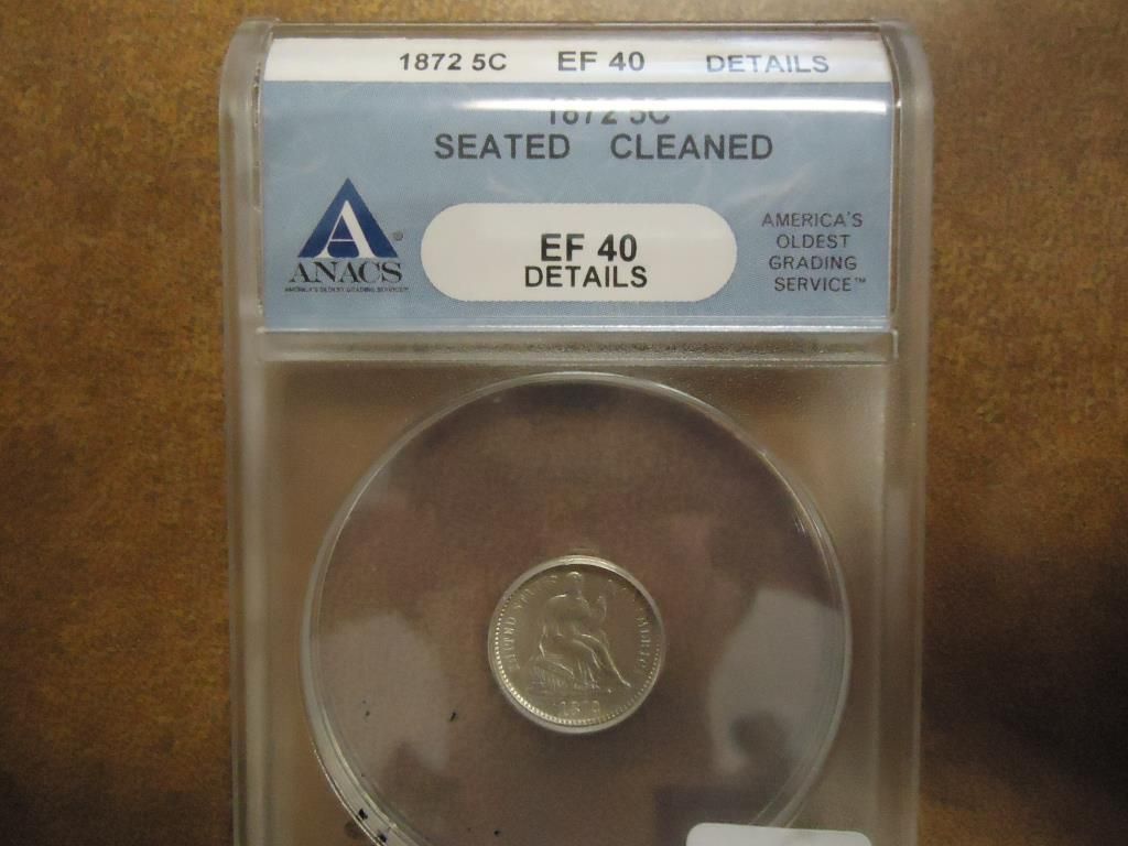 1872 SEATED LIBERTY HALF DIME ANACS EF 40 DETAILS
