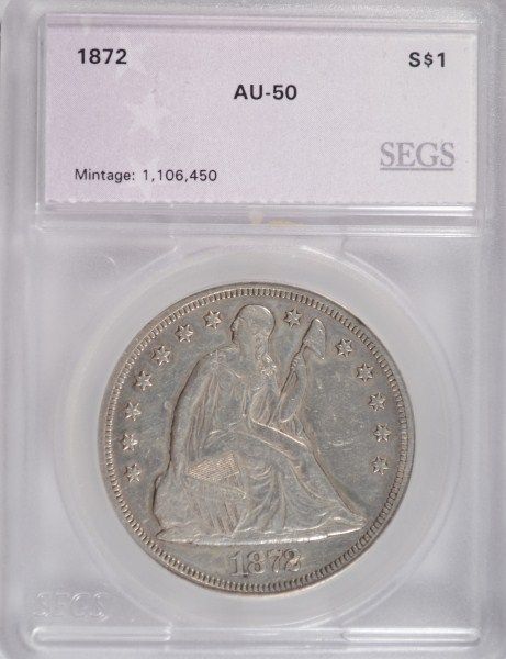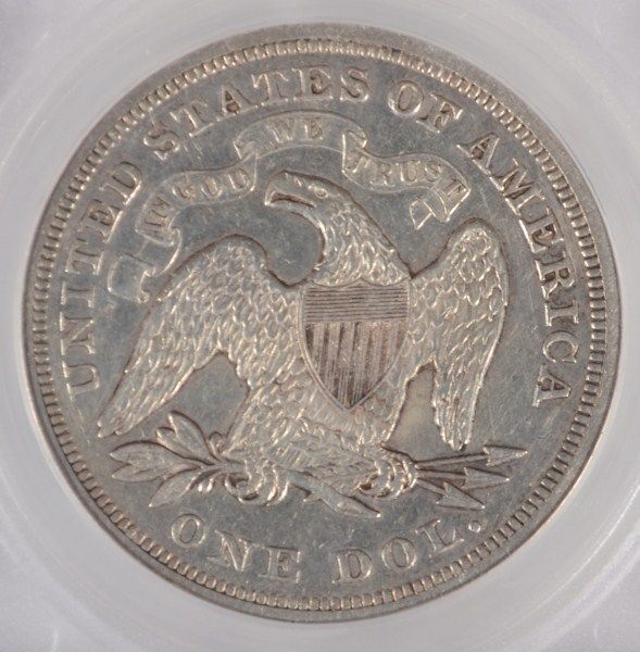 A VERY NICE EXAMPLE OF THIS DOLLAR FROM THE SEATED DOLLAR SERIES, ESTIMATE, $460.00 TO $500.00