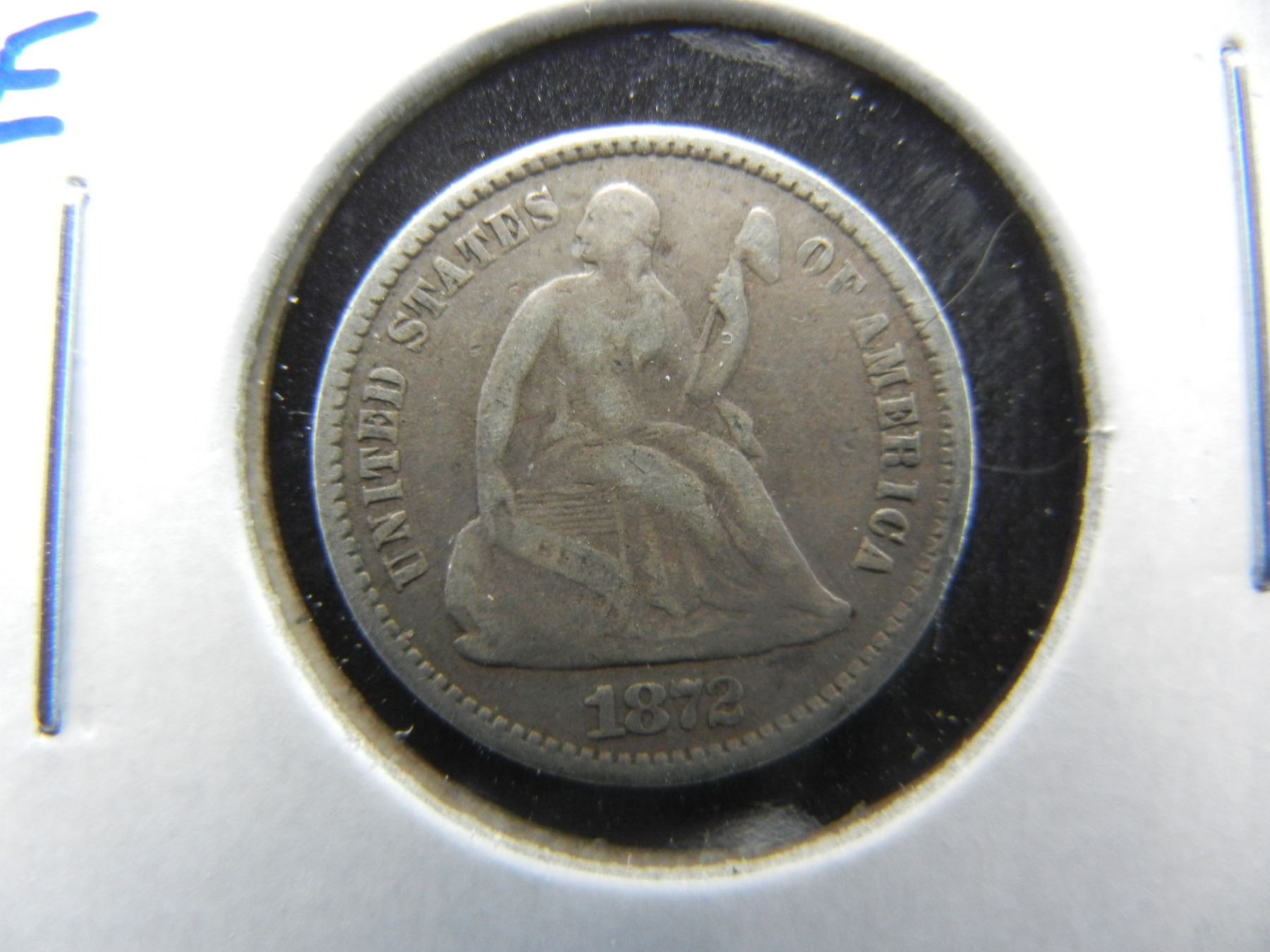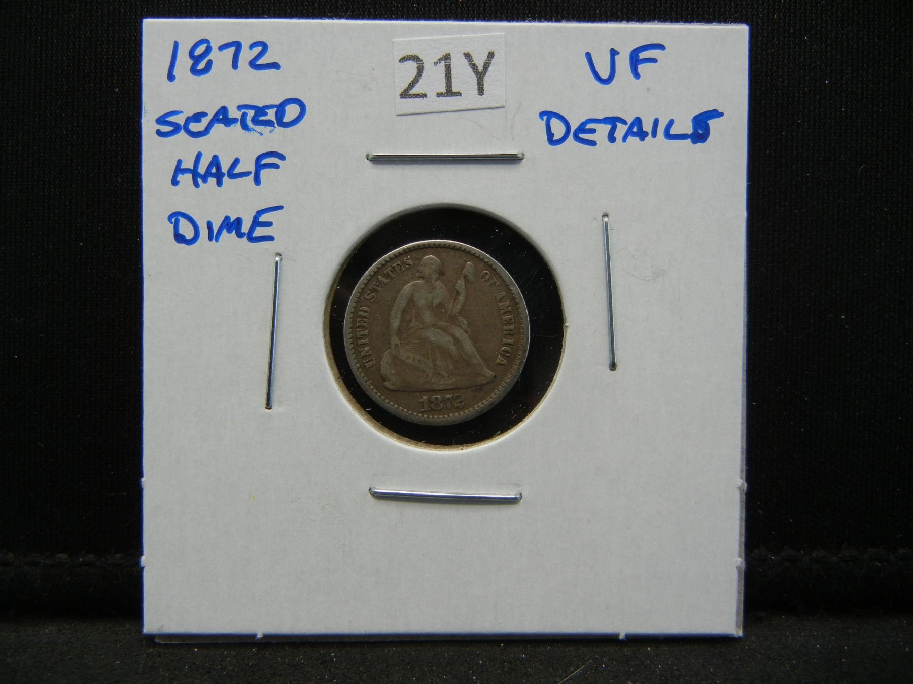 1872 Seated Half Dime. VF Details.
