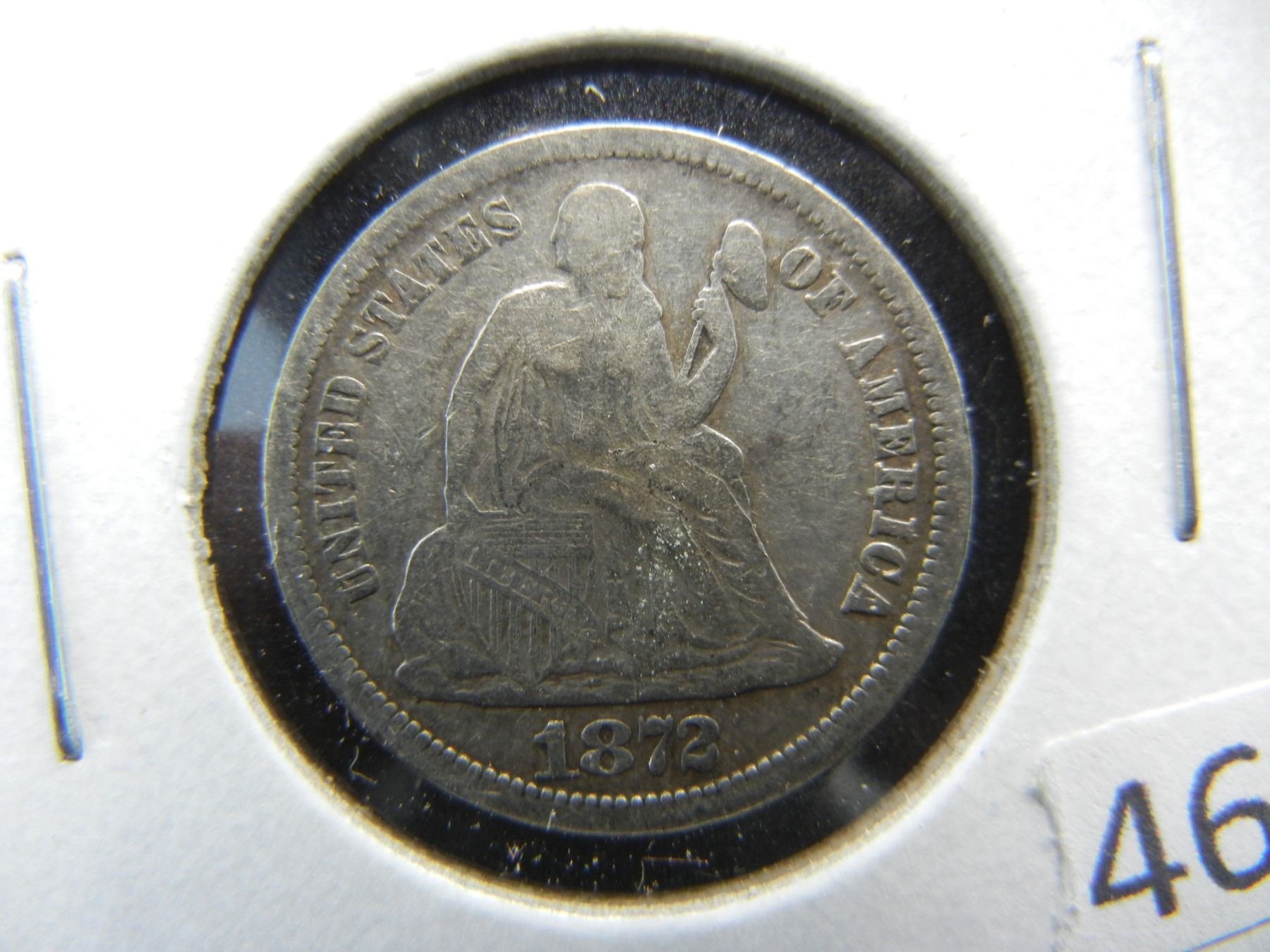 1872 Seated Liberty Dime.