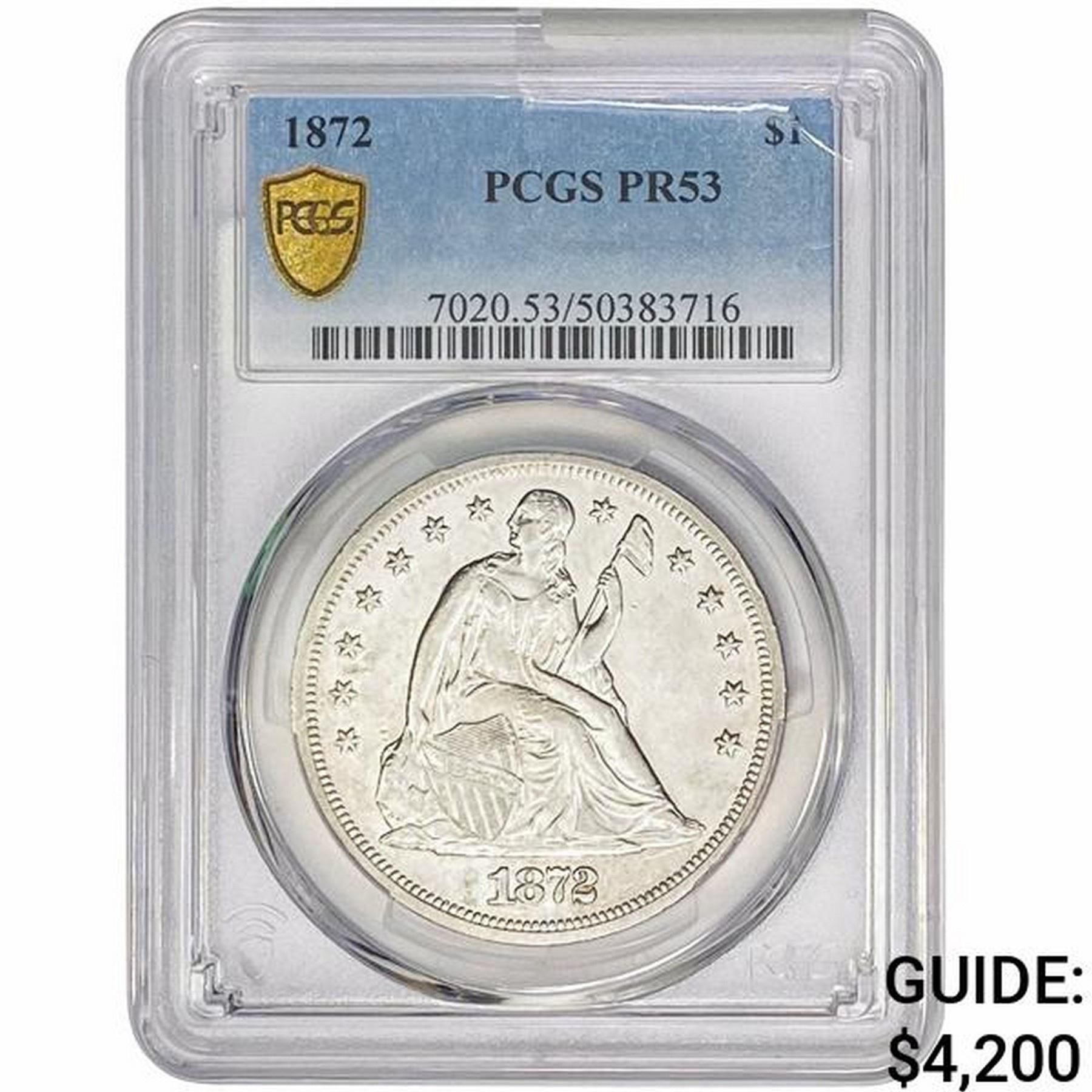 1872 Seated Liberty Dollar PCGS PR53