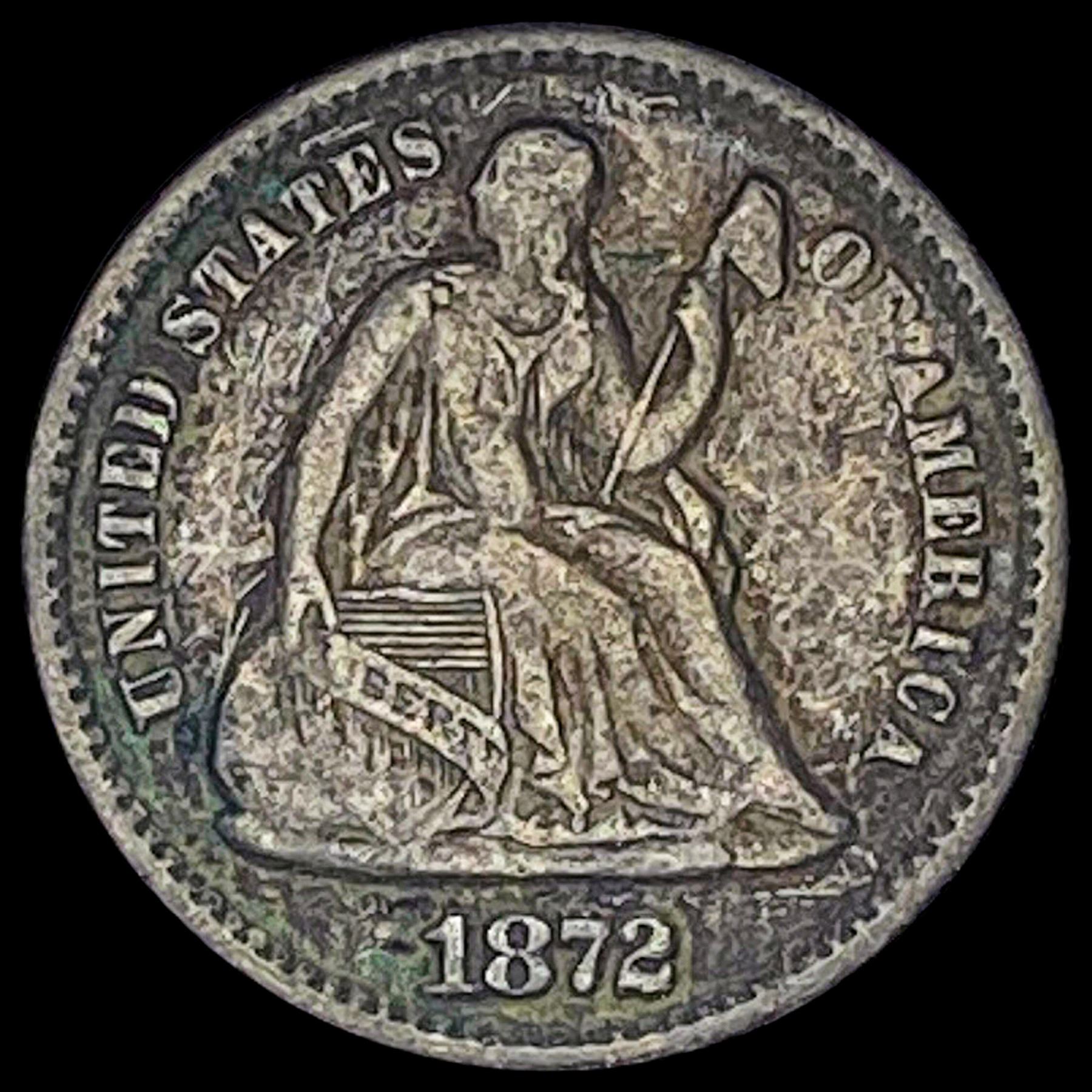 1872 Seated Liberty Silver Half Dime LIGHTLY CIRCULATED