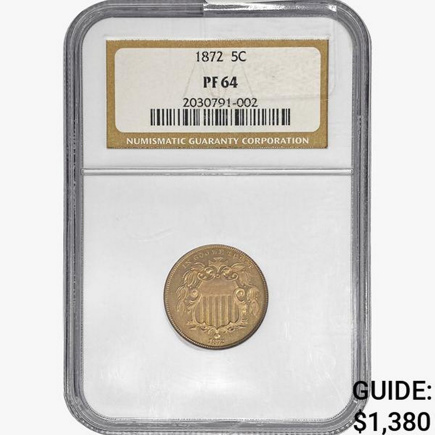 1872 Shield Nickel NGC PF64