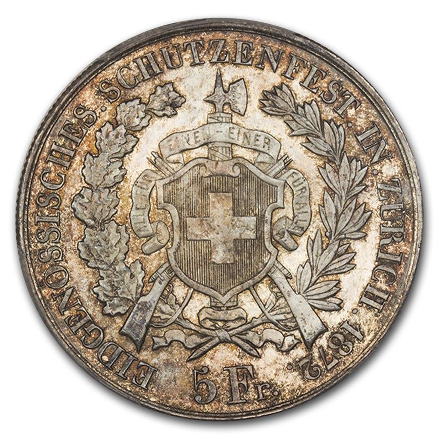 1872 Switzerland Zurich Shooting Thaler 5 Francs MS-65 PCGS