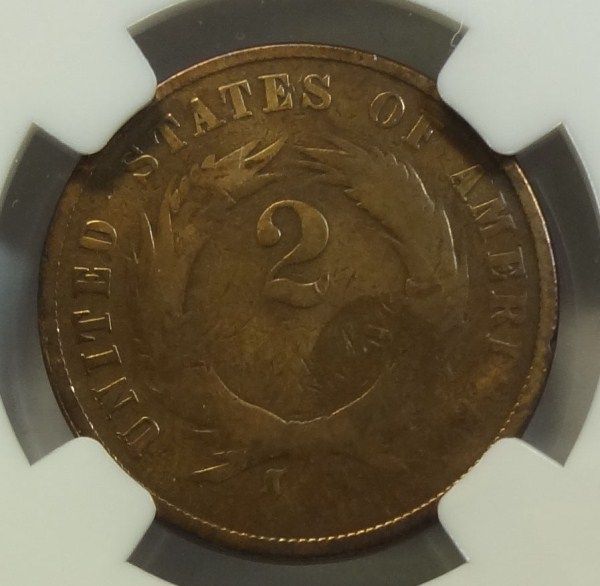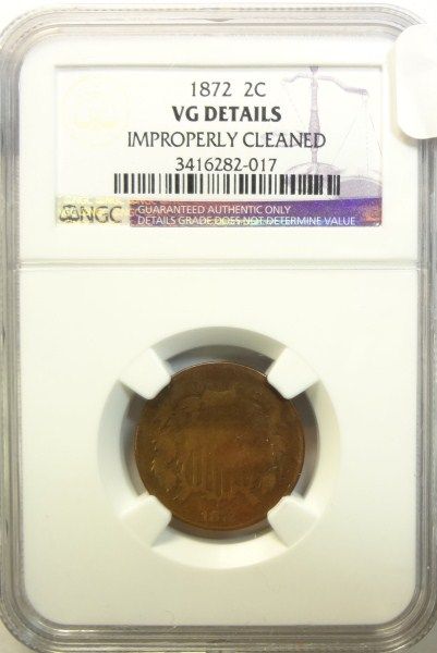 1872 TWO CENT PIECE NGC VG, CLEANED, RARE