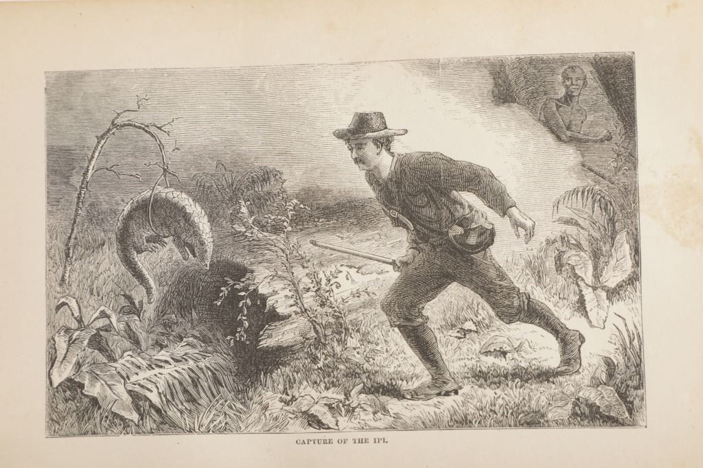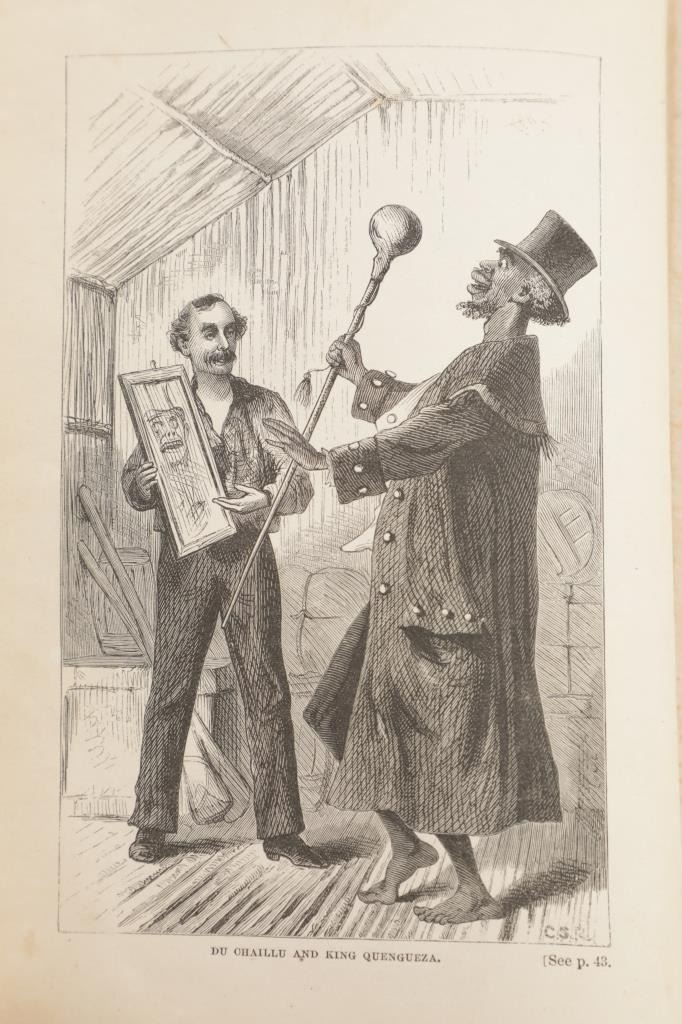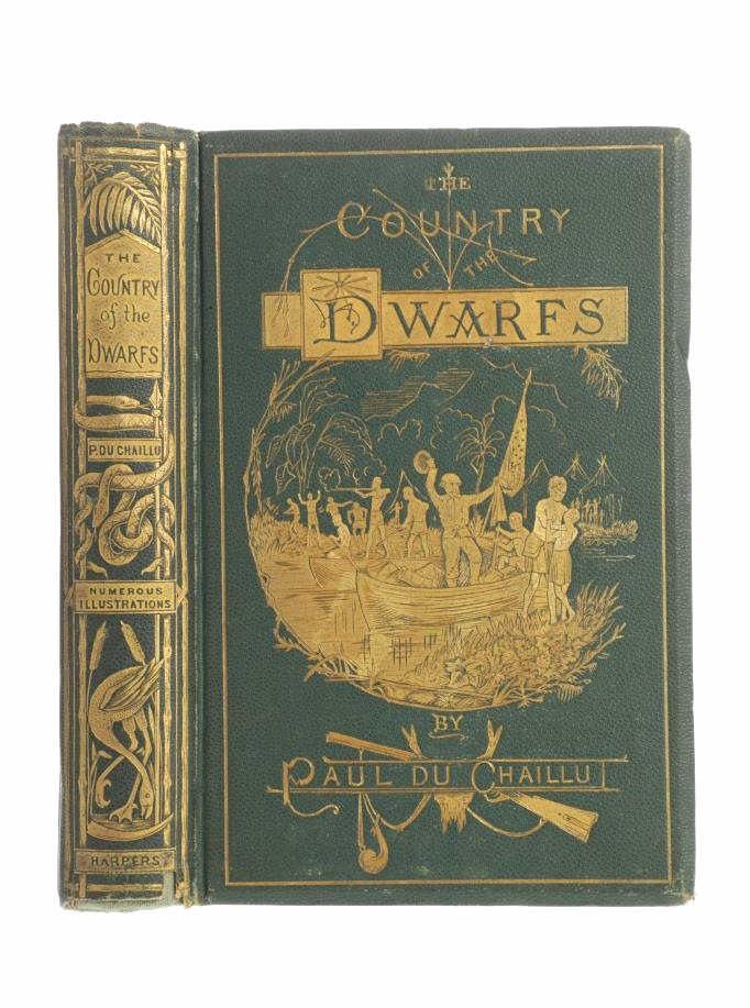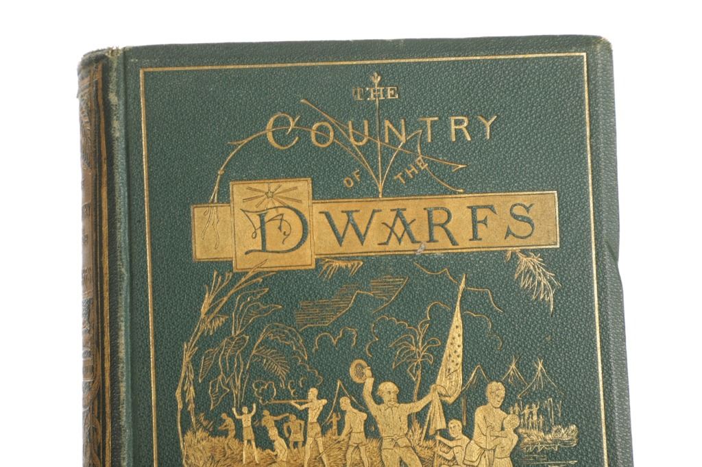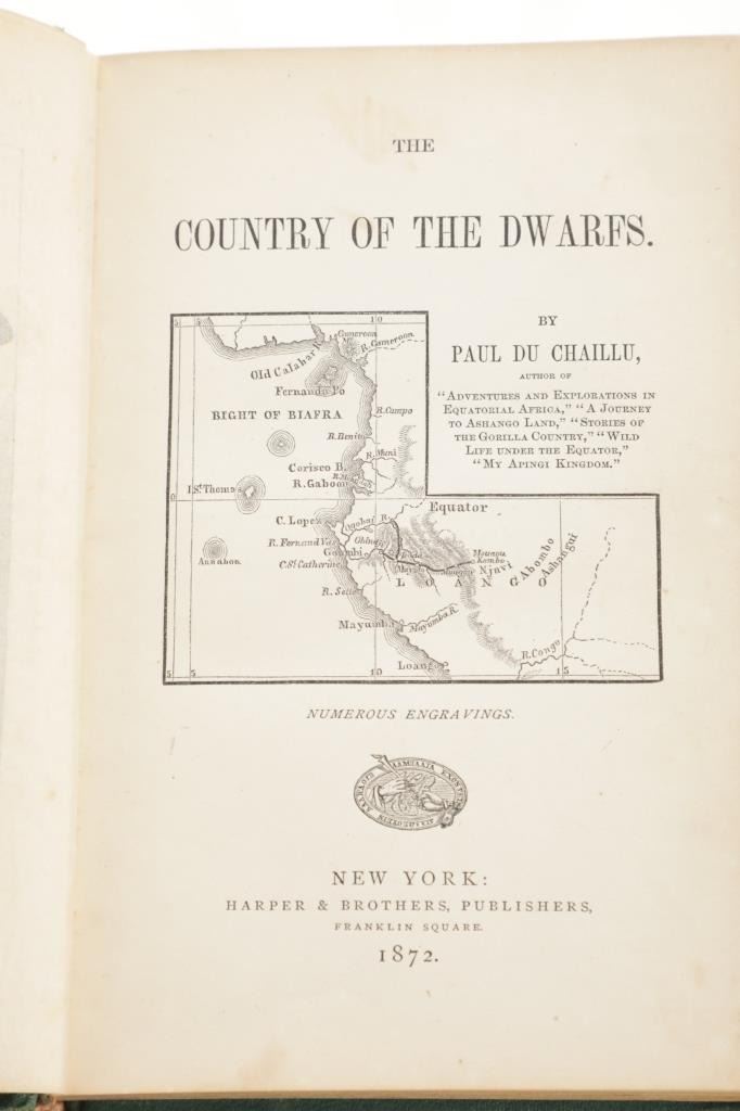 Featured in this lot is this 1872 of "The Country of the Dwarfs" by Paul du Chaillu. Paul du Chaillu was a 19th-century, French-American anthropologist who became famous for being the first to confirm the existence of gorillas and the Pygmy people in Africa to Europe. In his second expedition to Africa, beginning in 1863, Chaillu encountered the Pygmy people who inhabited the forests of Central and West Africa. The accounts of this voyage were published in his “Country of the Dwarfs”; it was in great demand in both America and England. This 1871 edition features 23 full-page engravings of the Pygmy people, as well as Chaillu’s experience within their culture. Other important details in this book include: African superstitions, tracing and hunting gorillas, discovery of ant-eaters and leopards, outbreak of the plague, witch doctor and a magic horn to control rain, making of poison arrows, dwarf dances, and more. Mark Twain, known for his travel books, owned a copy of this first edition and included it in his list of important travel books. The condition of this book is good with some slight wear to the bottom and top portion of the spine and browning to the pages consistent with the age of the book but otherwise in good overall condition. The measurements of this book are 7 5/8" x 5 1/4" x 1 1/8".