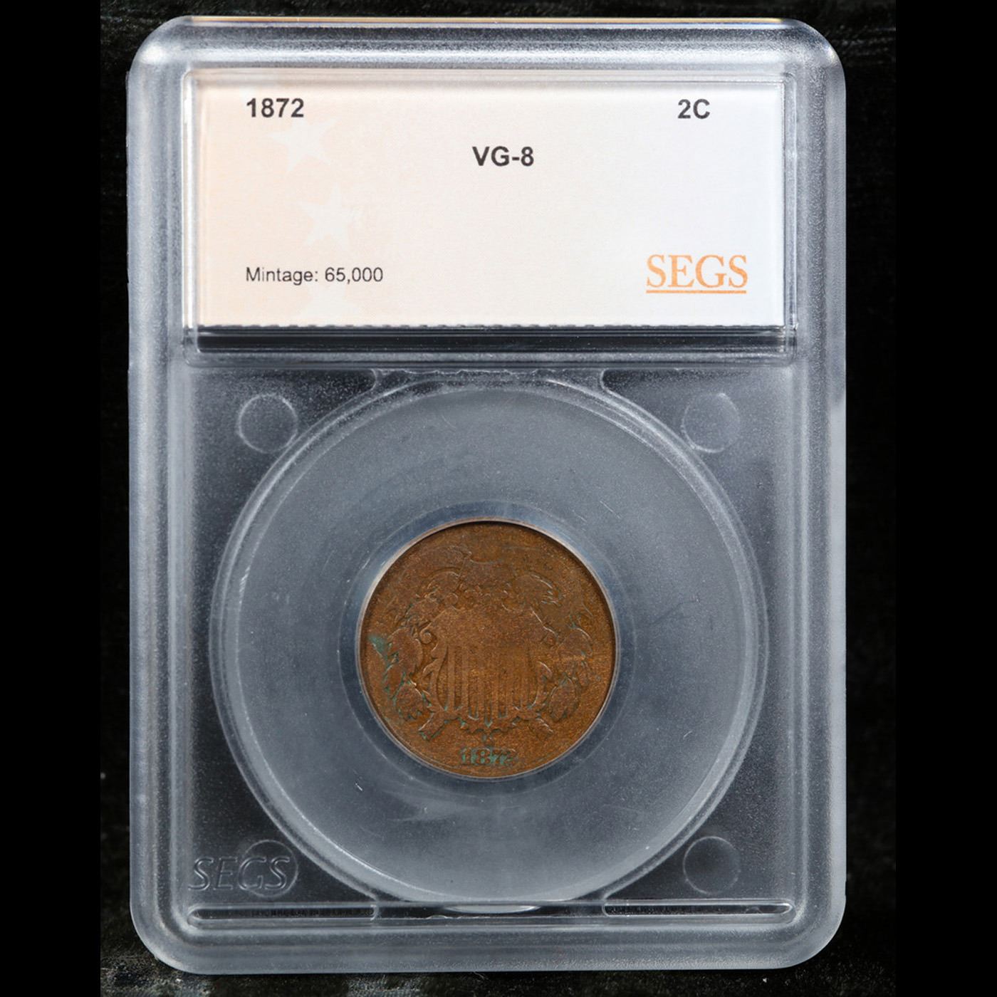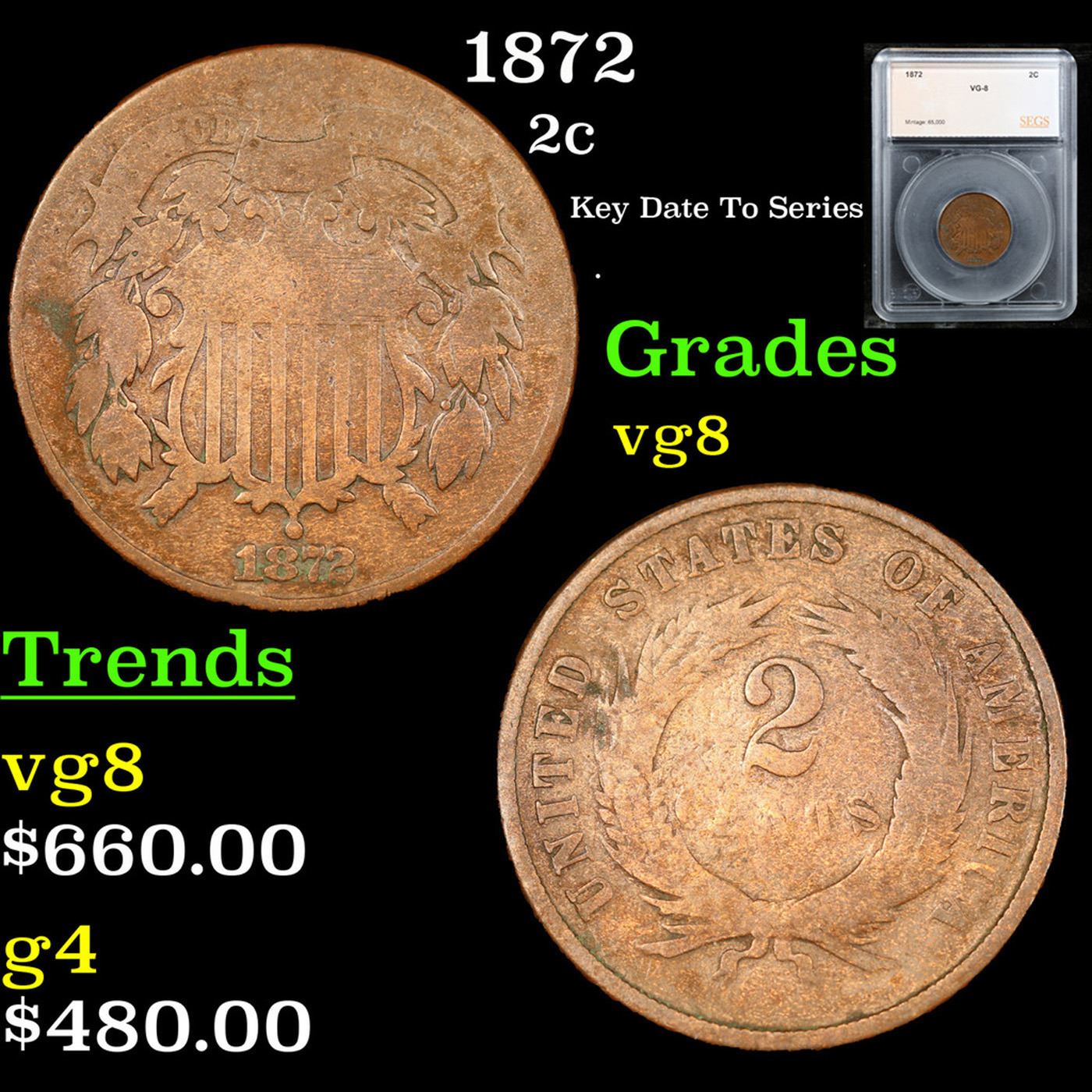 1872 Key Date To Series Two Cent Piece 2c Graded vg8 By SEGS.