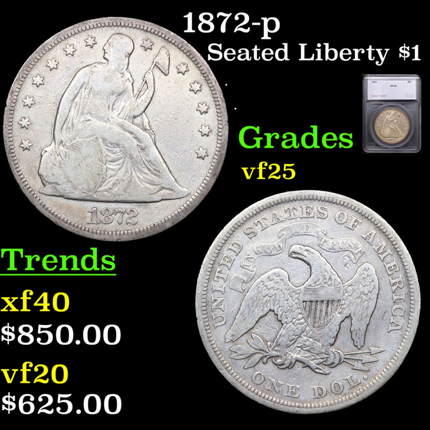 1872-p Seated Liberty Dollar $1 Graded vf25 By SEGS.