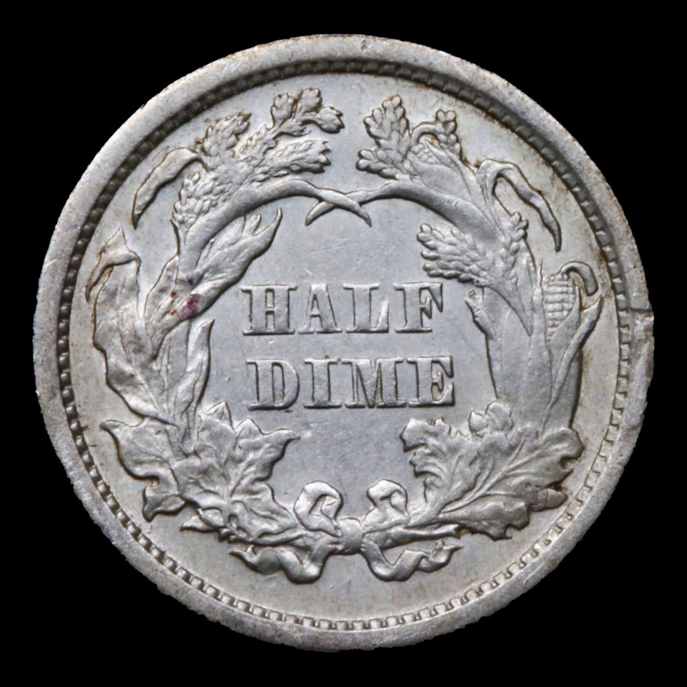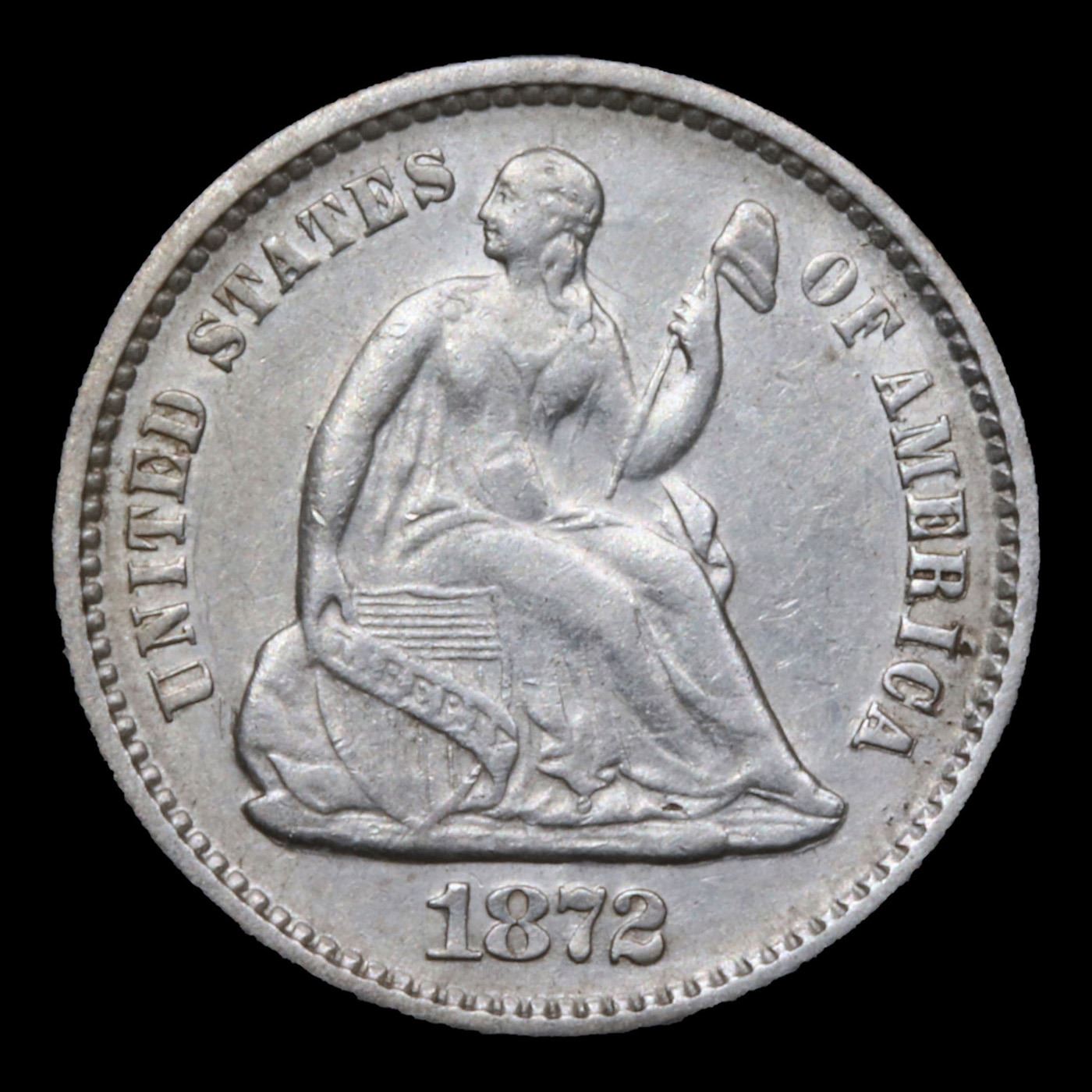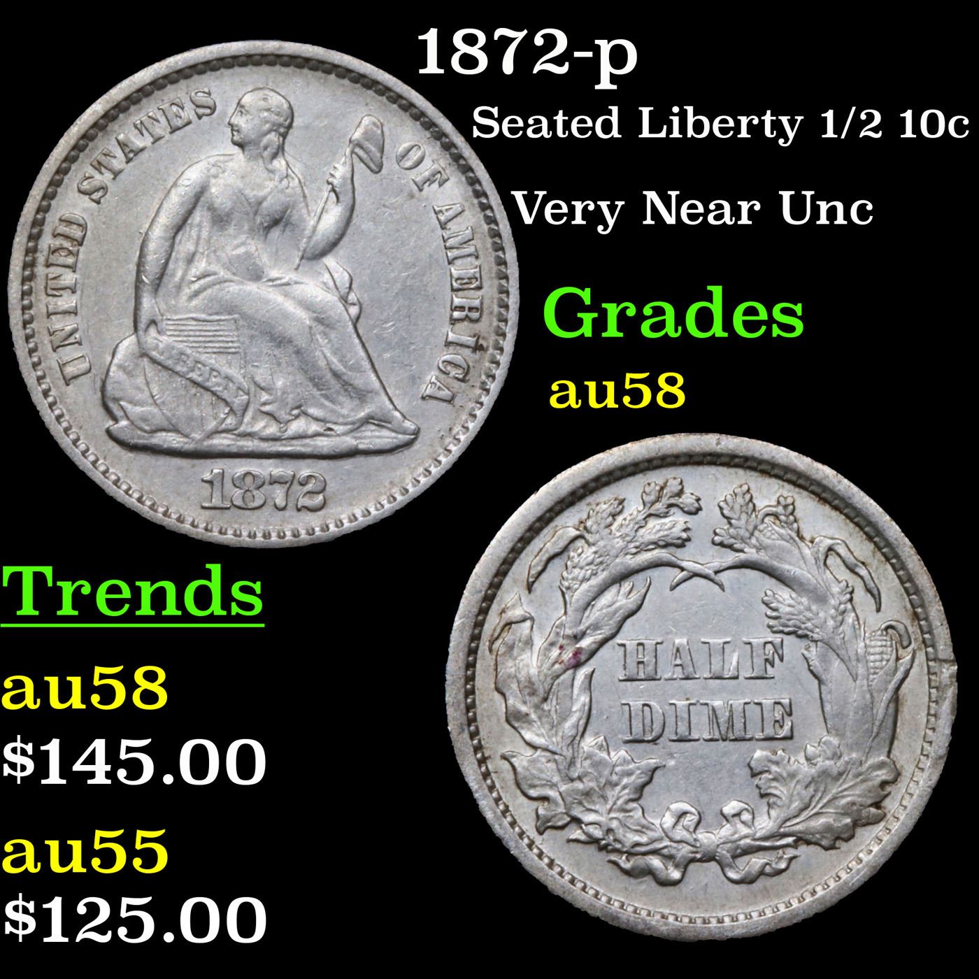 1872-p Seated Liberty Half Dime 1/2 10c Grades Choice AU/BU Slider.