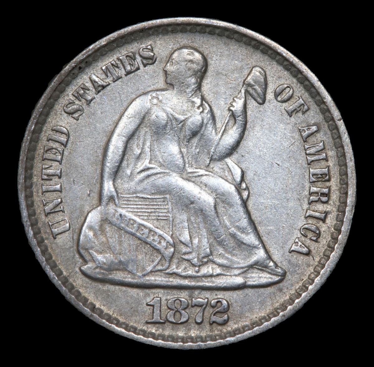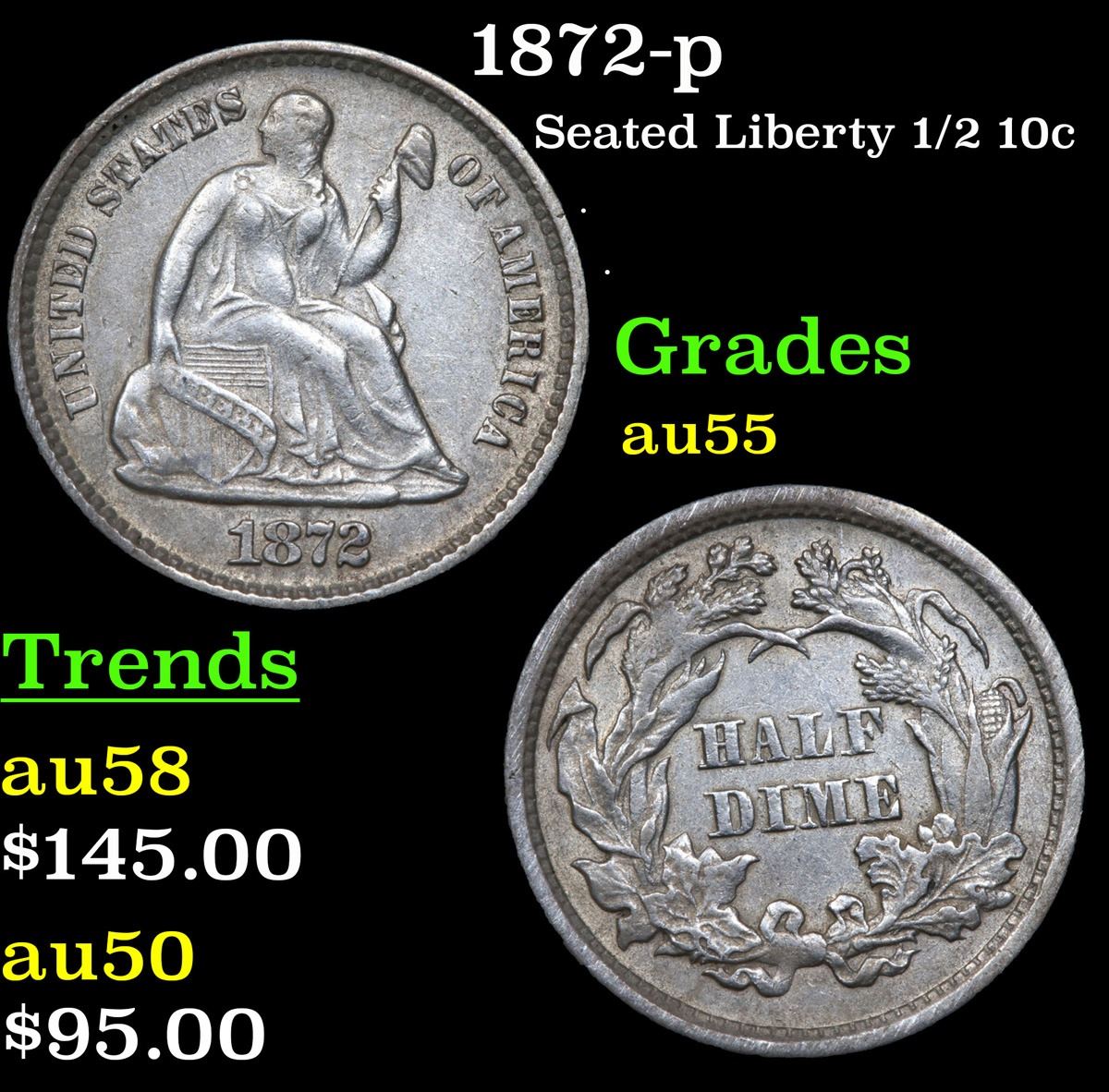1872-p . . Seated Liberty Half Dime 1/2 10c Grades Choice AU.