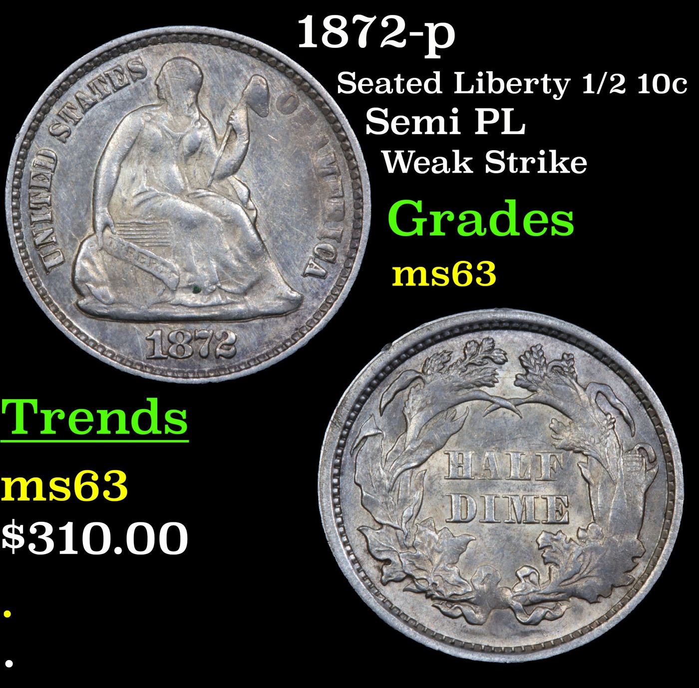 1872-p Seated Liberty Half Dime 1/2 10c Grades Select Unc.