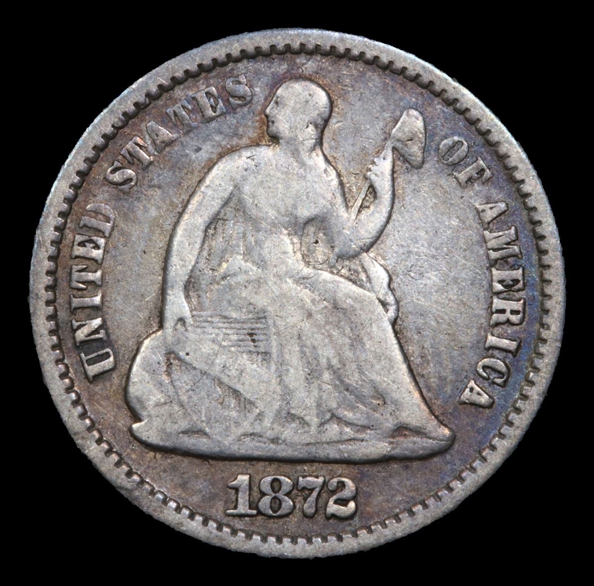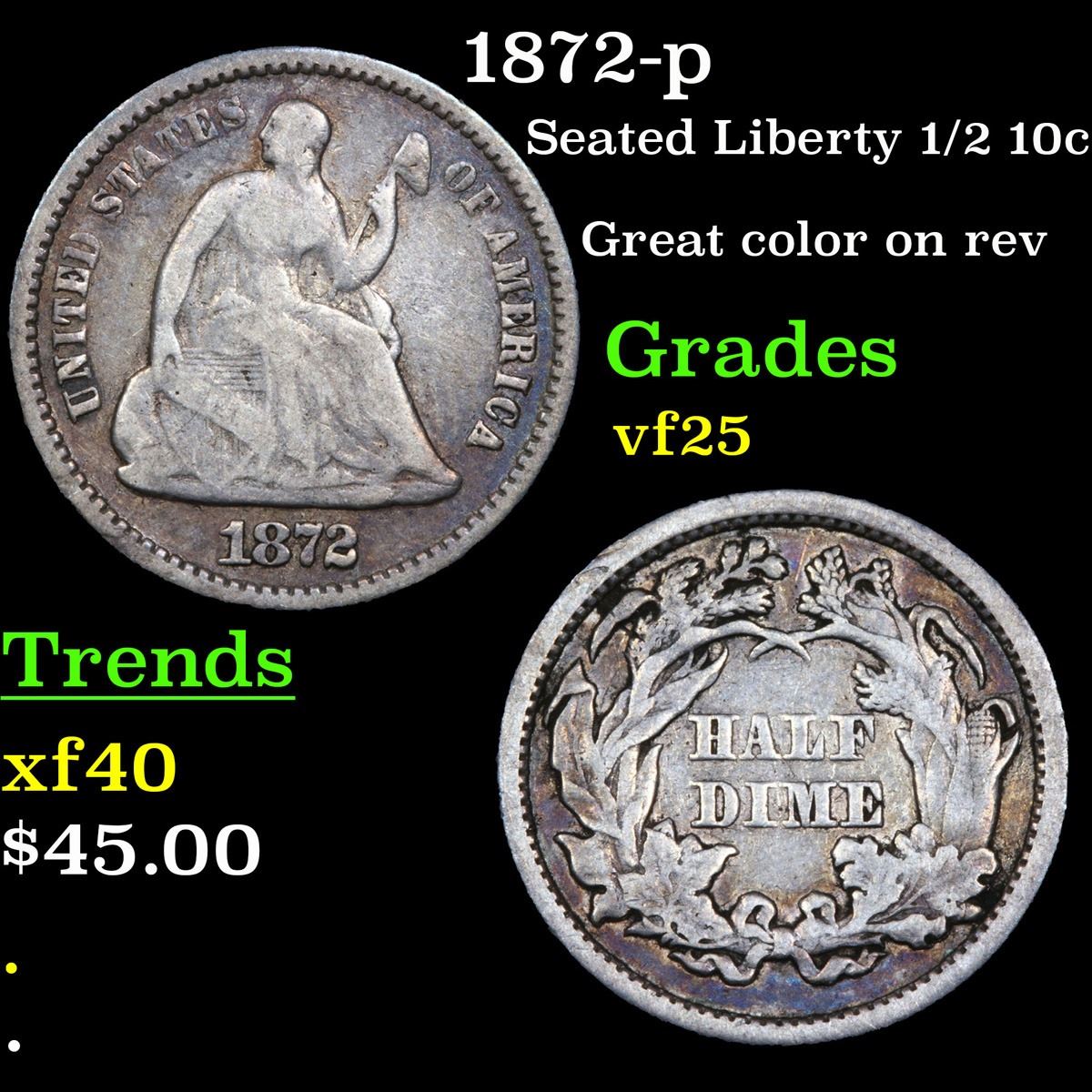 1872-p Great color on rev . Seated Liberty Half Dime 1/2 10c Grades vf+.