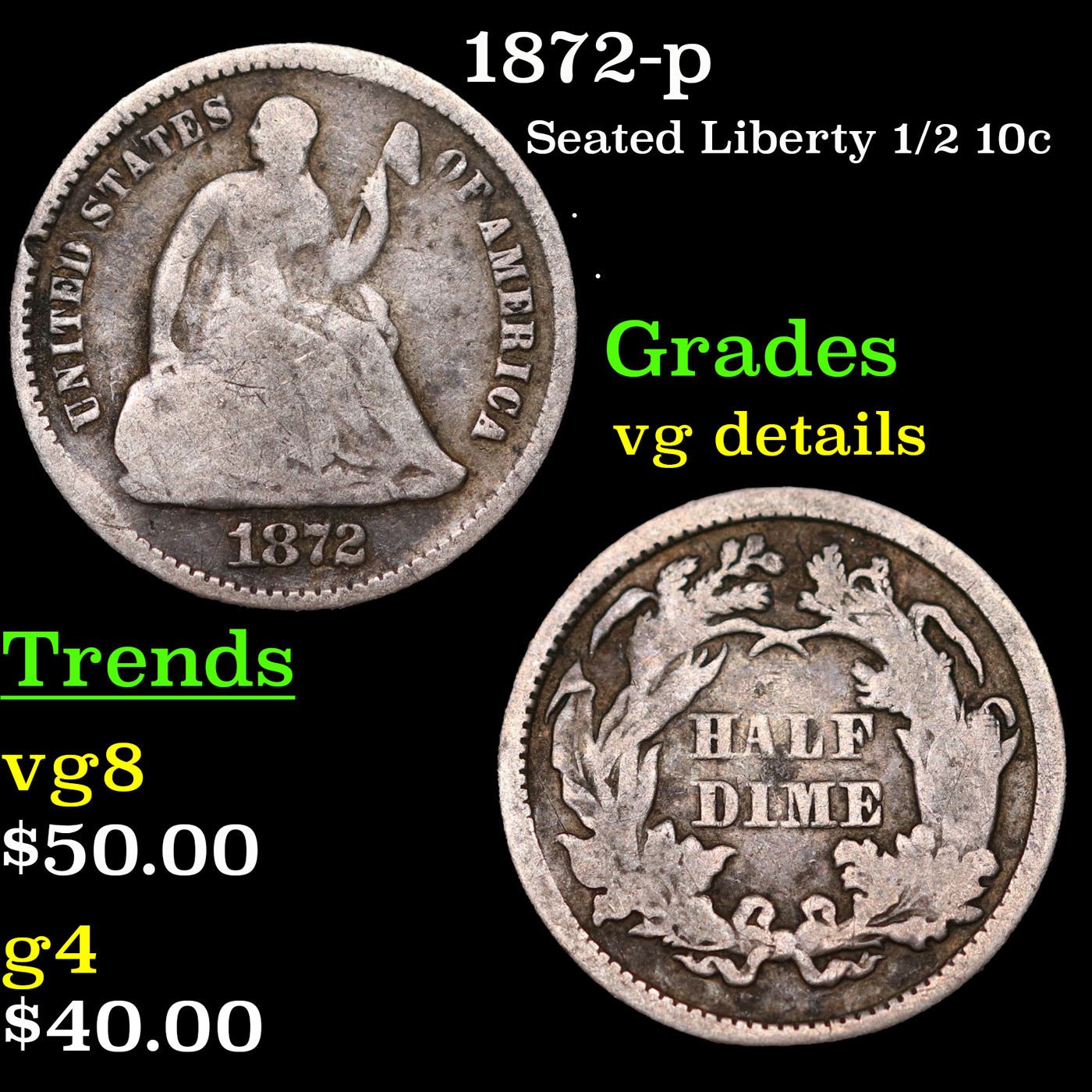 1872-p Seated Liberty Half Dime 1/2 10c Grades vg details.