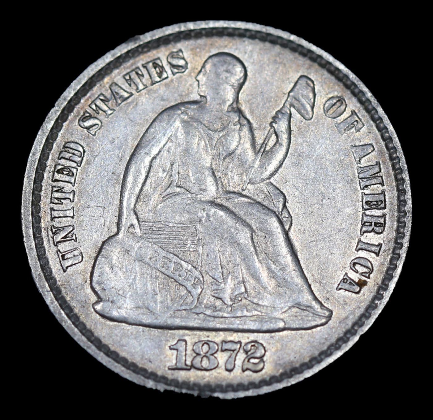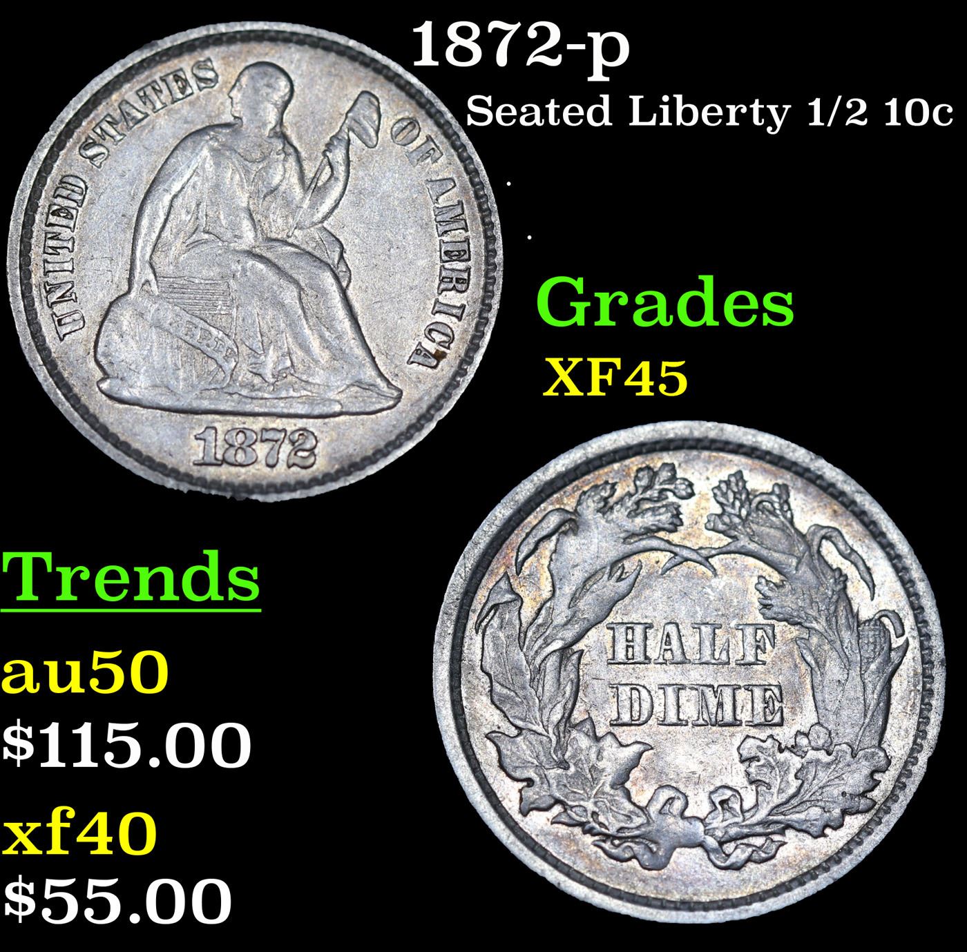 1872-p Seated Liberty Half Dime 1/2 10c Grades xf+.