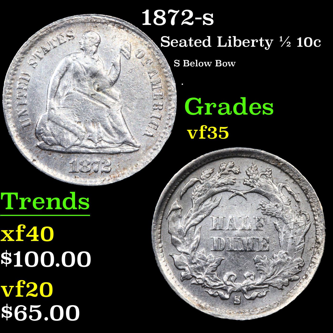 1872-s Seated Liberty Half Dime 1/2 10c Grades vf++.
