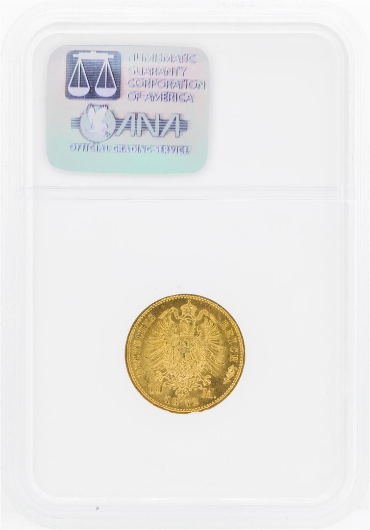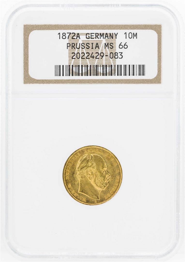 One 1872A Germany Prussia 10 Marks Gold Coin NGC MS66. NGC Certified.