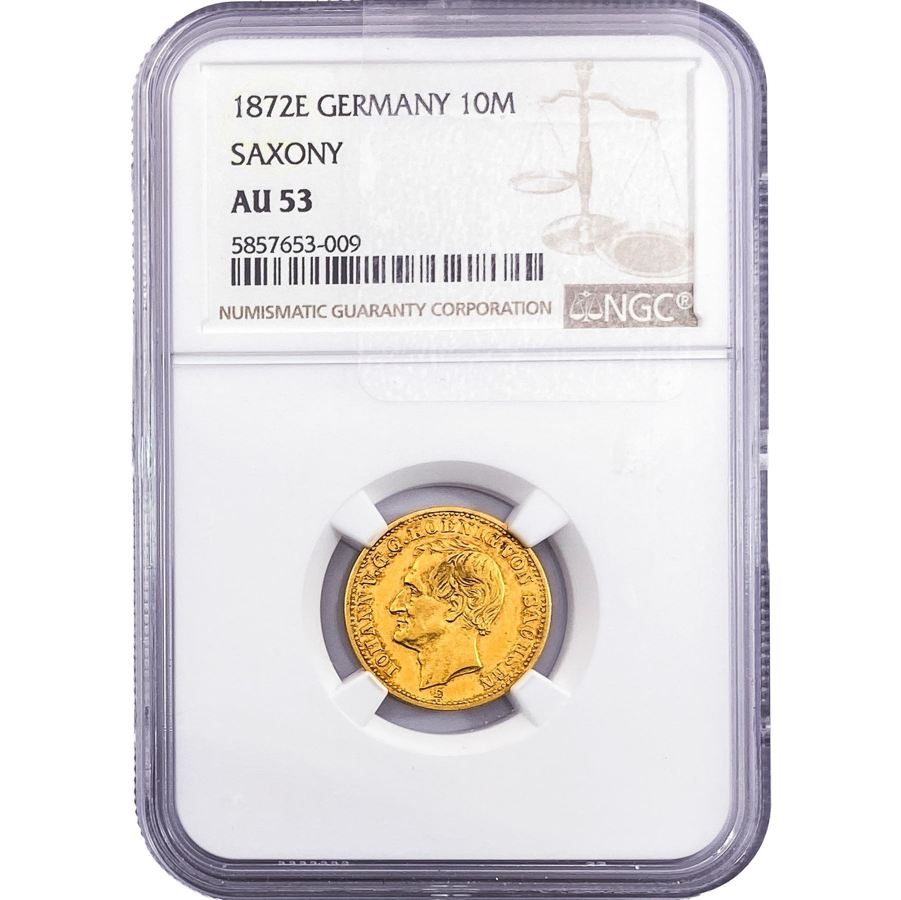 1872E Germany .1152oz Gold 10 Mark NGC AU53