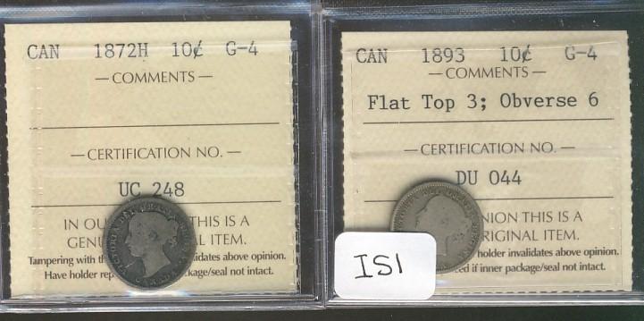 1872H 10¢ & 1893 FT Obv 6 ICCS G4. Lot of 2 coins.