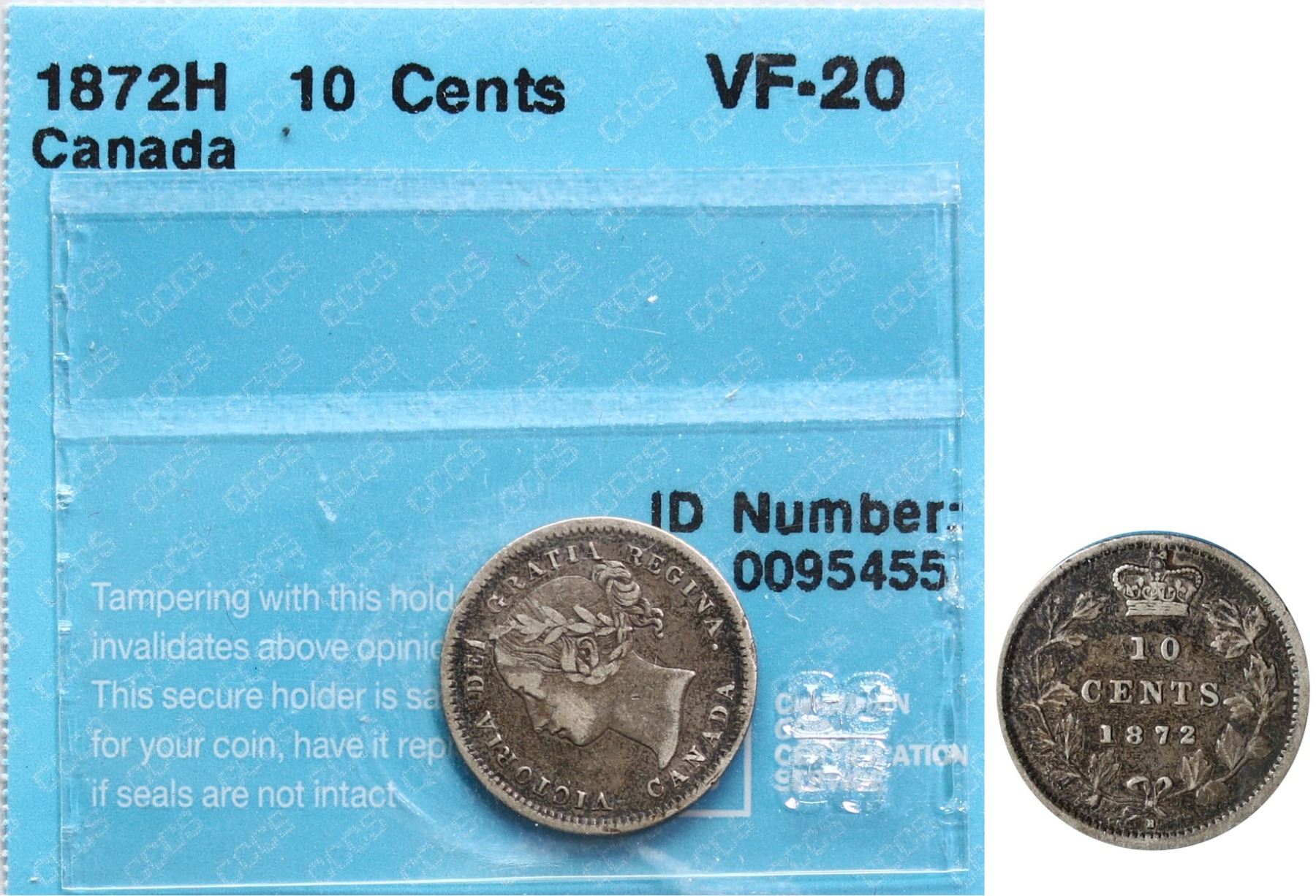 1872H 10¢ CCCS Very Fine-20, Key date.