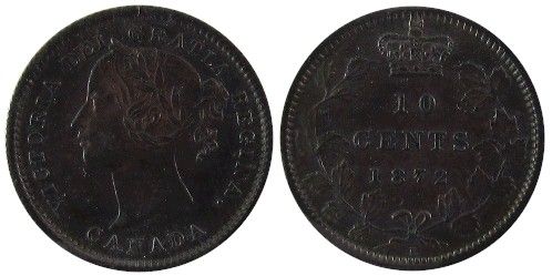 1872H 10 Cents, ICCS AU58; Key issue, nicely toned.