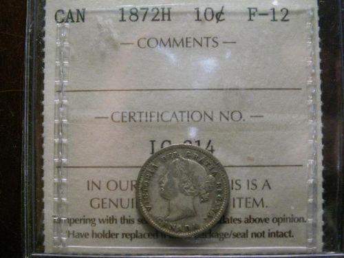 1872H 10¢ ICCS F12, nice problem free key date example.