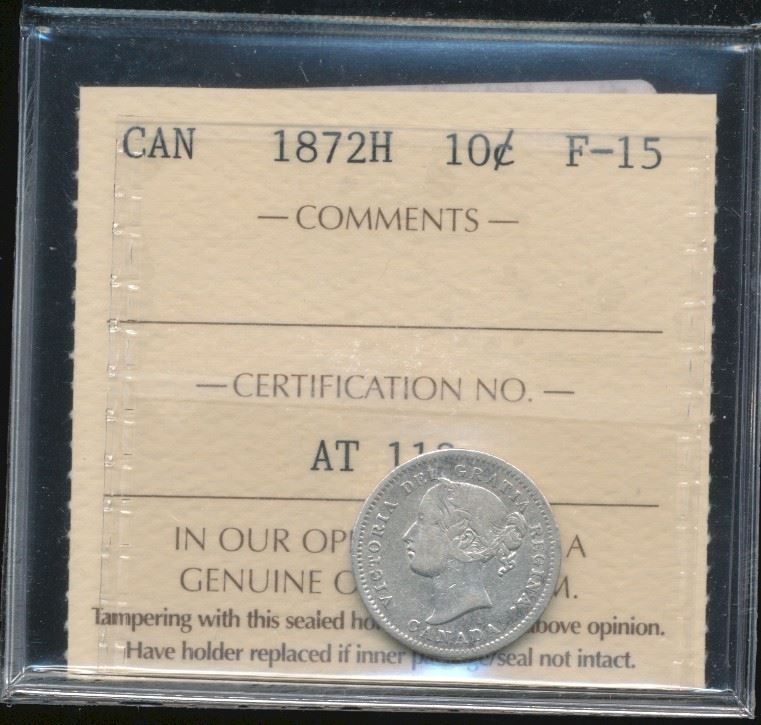1872H 10¢ ICCS F15. Nice affordabel key issue.
