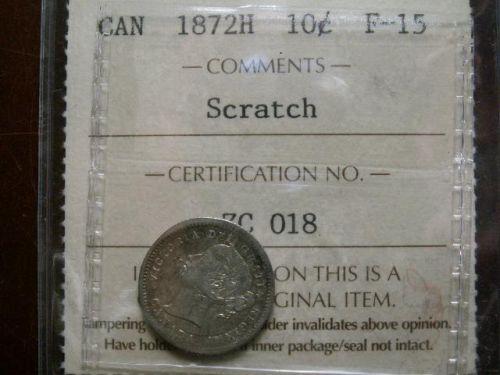 1872H  10¢ ICCS F15, lightly toned with a very small scratch hidden by toning.  Hardly noticeable.