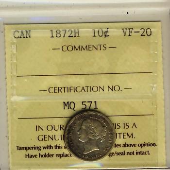 1872H 10¢ ICCS VF20.