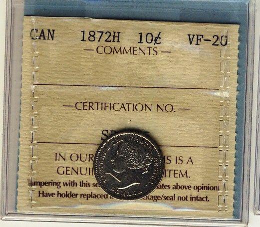 1872H 10¢ ICCS VF20