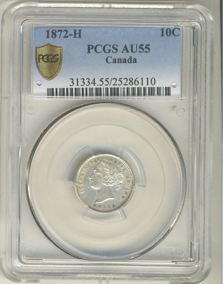 1872H 10¢ PCGS AU55. Key issue, nice appeal for grade.