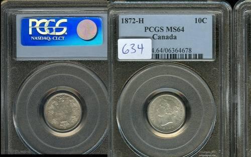 1872H 10¢ PCGS MS64PQ Fully struck with lovely fields. Blast white with full lustre. A superior example with lots of pop! A rare key date in top condition. Will be difficult to improve on this one.