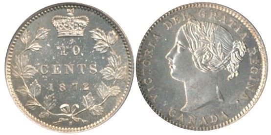 1872H 10¢ PCGS SP66. Full white sparkling example.