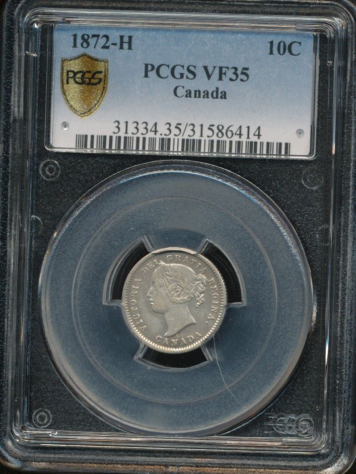 1872H 10¢ PCGS VF35. Attractive key date issue.