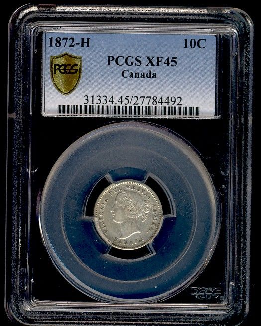 1872H 10¢ PCGS XF45. Key date issue.