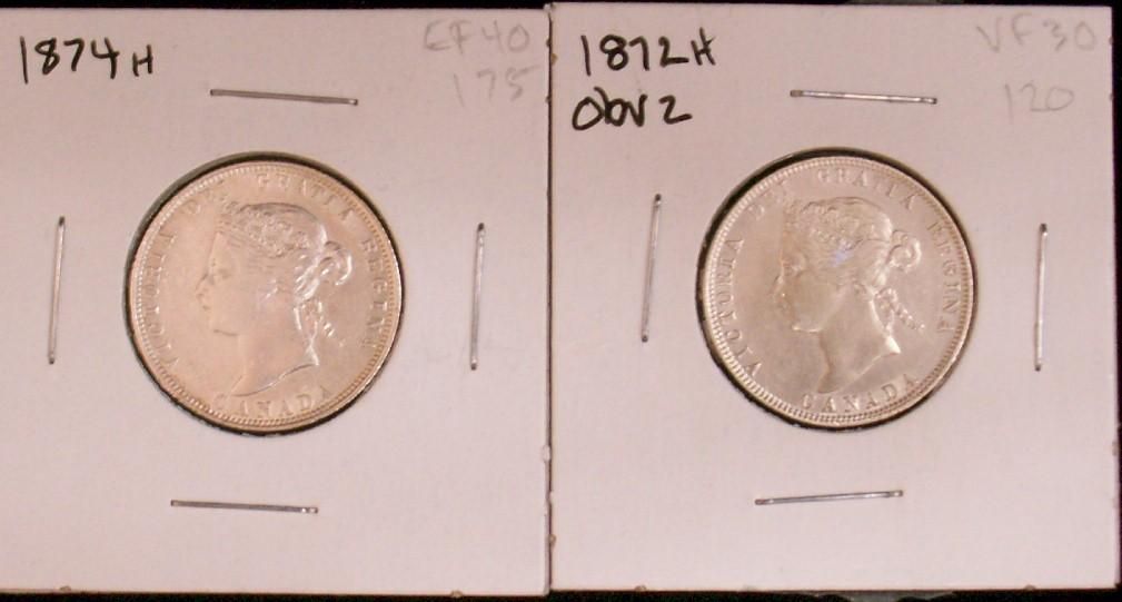 1872H & 1874H 25¢ 25¢. Lot of 2 coins both VF20++.