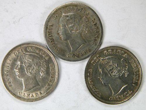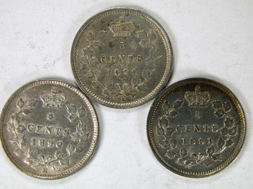 Canada Five Cents 1872H, 1890H and 1891 Obverse 2, all EF with remaining lustre and pale golden toning