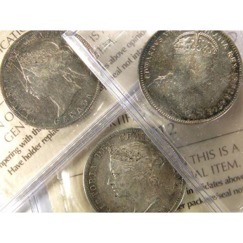 GRADING AND DESCRIPTION OF LOTS: Many of the more important coins in this sale have been independently graded by third party certification services, mostly ICCS, NGC and PCGS, the most recognised standards for Canadian coins. Census data used in the lot descriptions are from the most recent issue of the ICCS Population Report and from the PCGS and NGC on-line Population Reports. For some of the lots, in addition to the grade, you will see the following eye appeal descriptors: “+”, which is used to indicate Above Average Eye Appeal for the grade; “PQ”, which is used to indicate Premium Quality, or Well Above Average Eye Appeal; and “PQ+”, which is used to indicate Superb Eye Appeal. These terms, which can significantly affect the values of the coins, are used by the cataloguer (Michael Walsh) based on his personal skill and experience, and may or may not agree with the opinions of other experts.