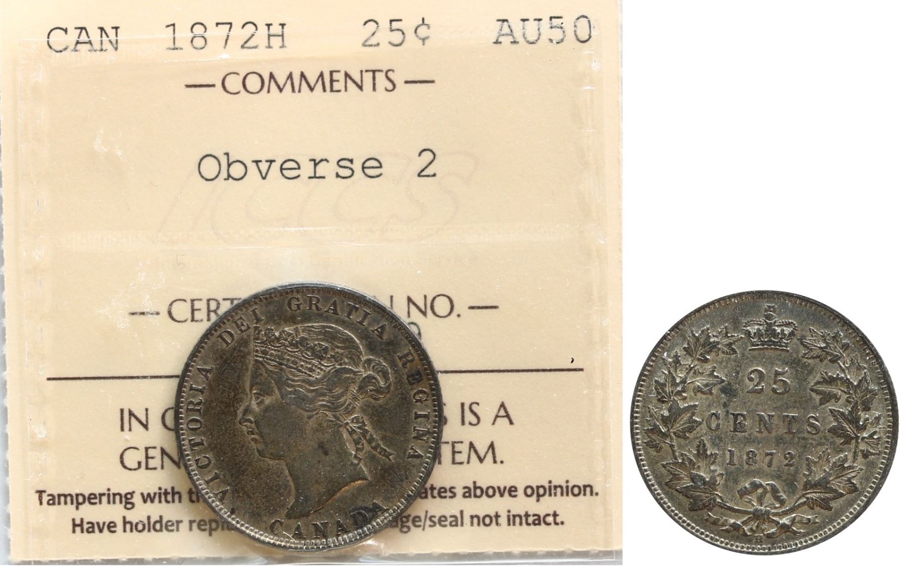 1872H 25¢ "Obv.2" ICCS About Uncirculated-50