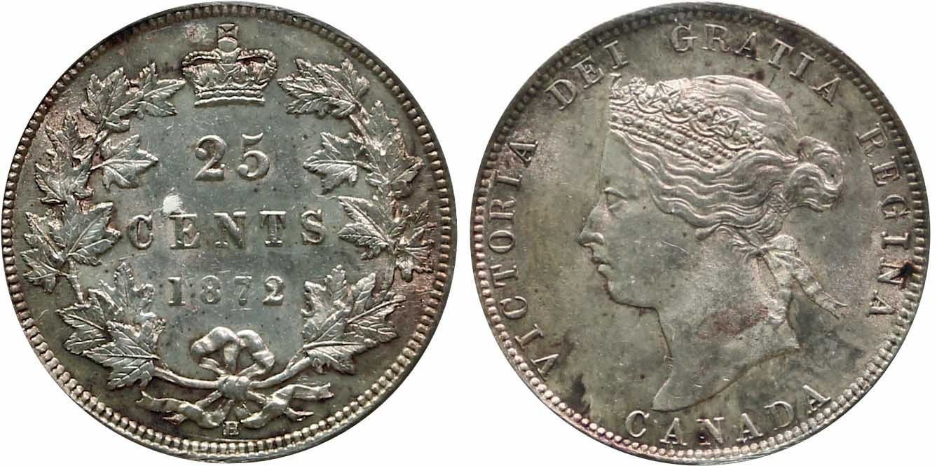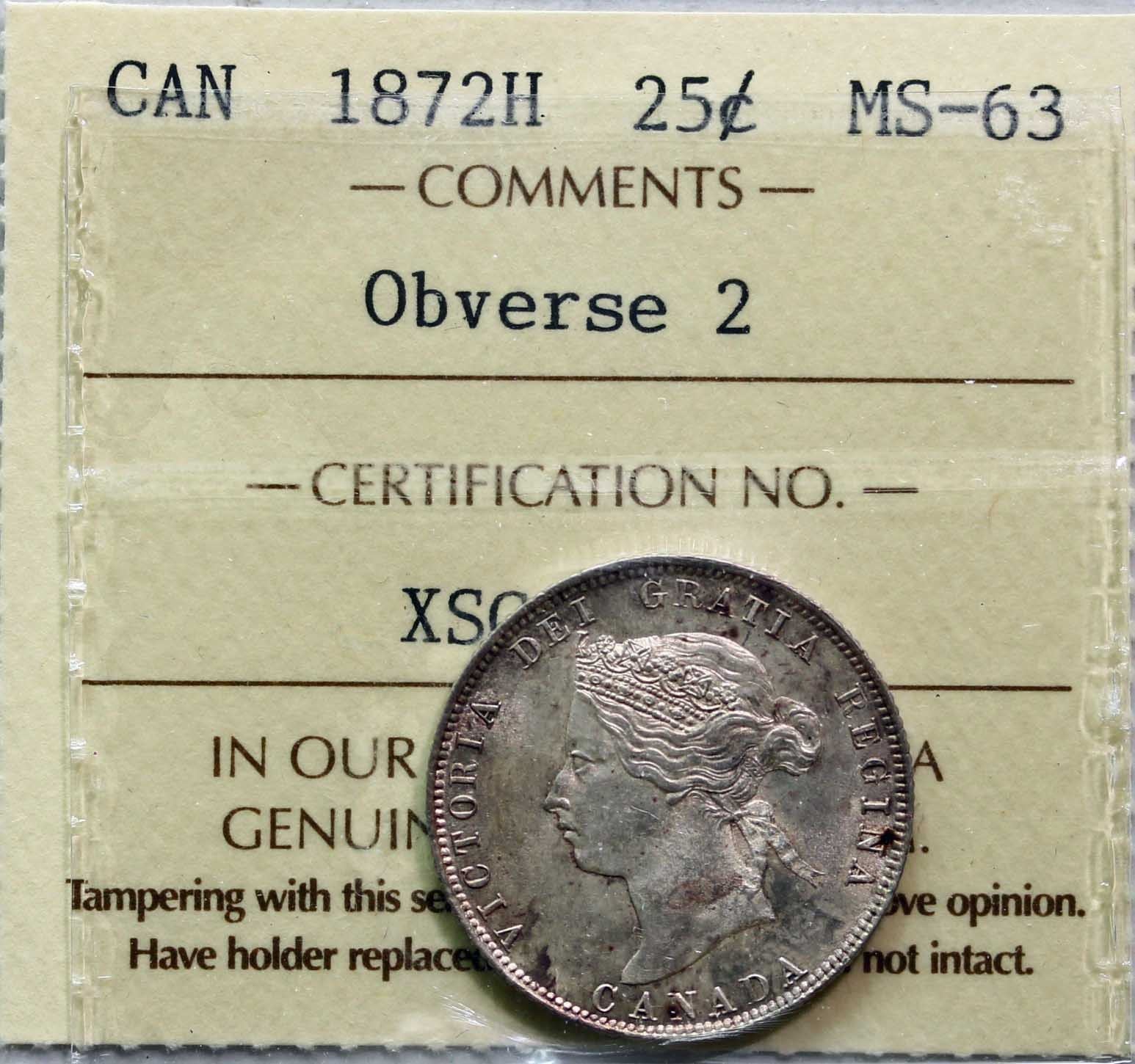 1872H 25¢ "Obv.2" ICCS Choice Mint State-63 A nice and pleasing example with clean fields and strong lustre