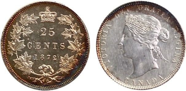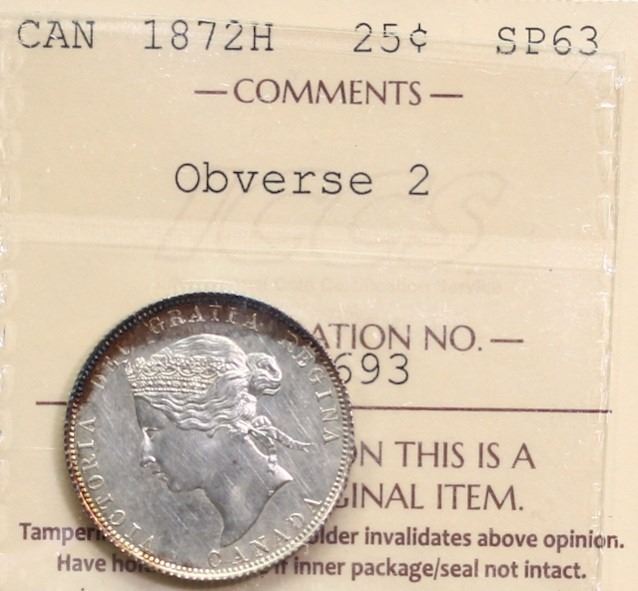 1872H 25¢ Obv 2 ICCS Choice SPECIMEN-63. A fantastic and scarce specimen example displaying a matte like finish and some peripheral tones. Looks to be a small 2 variety.