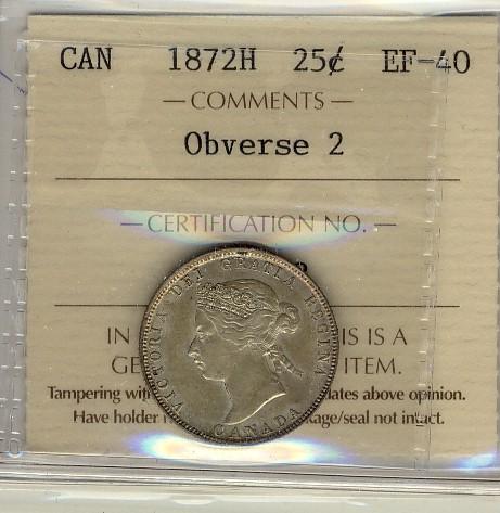 1872H 25¢ Obv 2 ICCS EF40