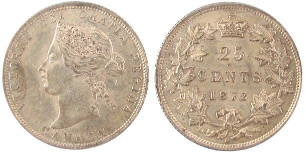 1872H 25¢ Obv 2 ICCS MS62. Hint of gold and strong lustre.