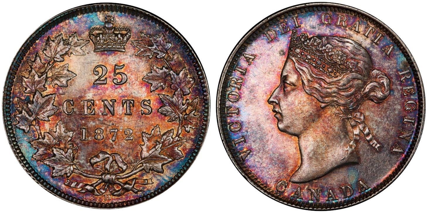 1872H 25¢ Obv 2 PCGS Choice Mint State-64. A very nice and attractive example