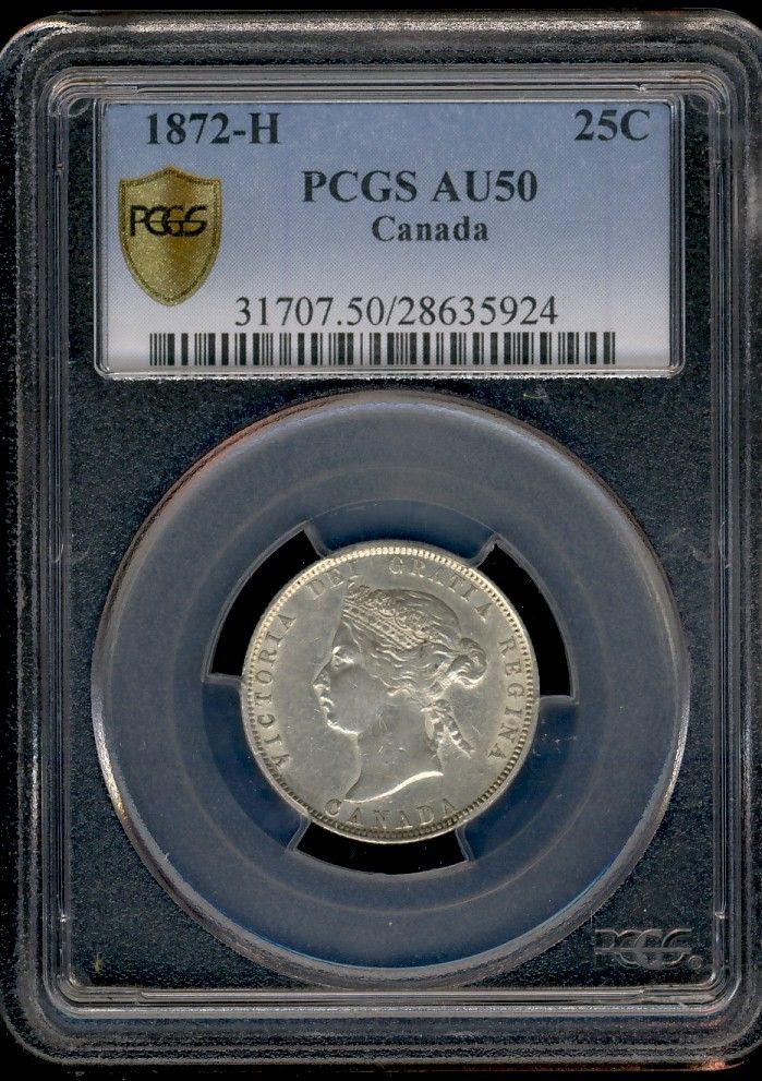 1872H 25¢ PCGS AU50