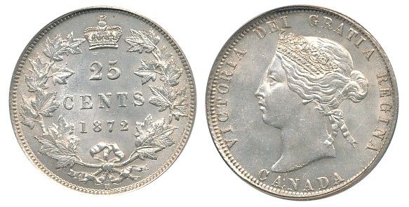 1872H 25¢ PCGS MS62. Strong lustrous issue.