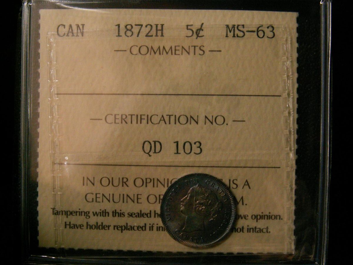 1872H 5¢ ICCS MS63. Intense autumn shades. A lovely example.